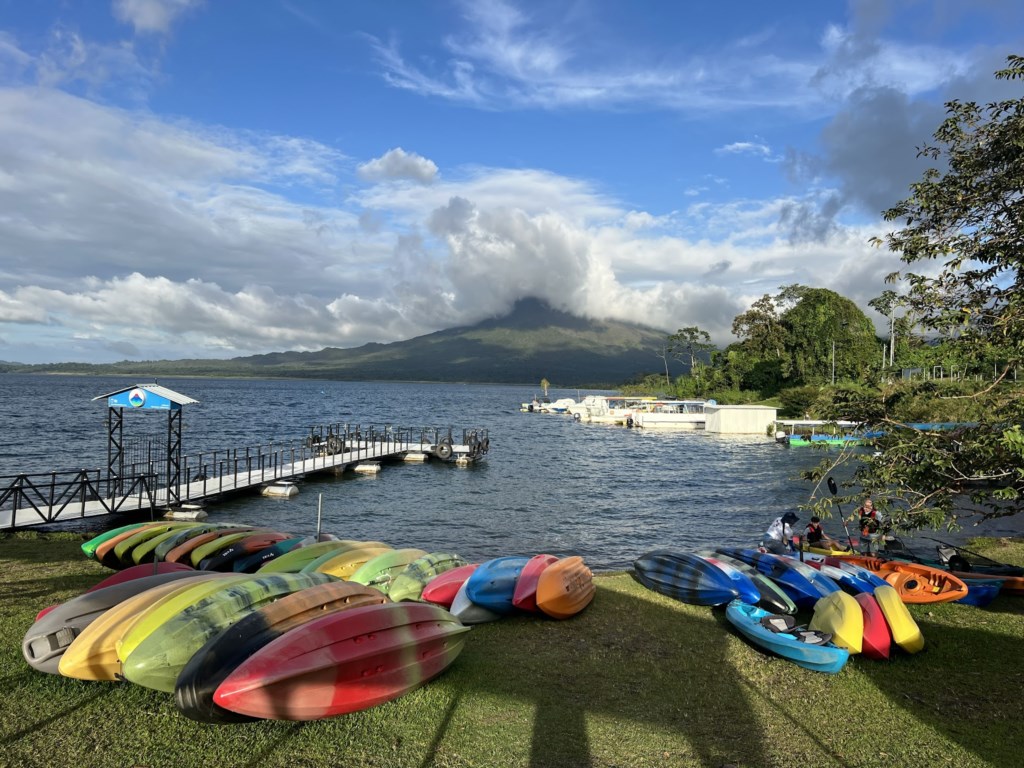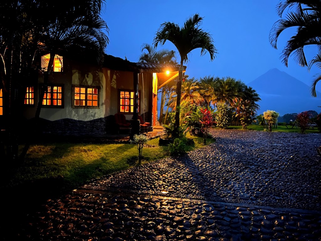 Tucked away in Northern Costa Rica, at the Eastern end of Lake Arenal and between the rainforest and Volcano Arenal, the Pie in the Sky houses rest in the peaceful, little village El Castillo. Very safe and very friendly. With a population of approximately 600, you will see more horses than cars and meet people with a passion for nature. At approximately 2000 feet the weather here is always very pleasant, not too hot, not too cold, sometimes rainy, but always very comfortable. Boasting the best views of the lake and volcano, only minutes from the best tours and natural hot springs, its easy for our guests find a deeper connection with nature and themselves.